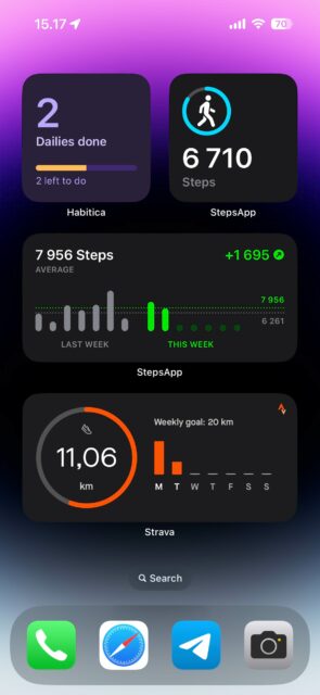 Päivän saavutukset kirjoittamishetkeen (15:34) mennessä