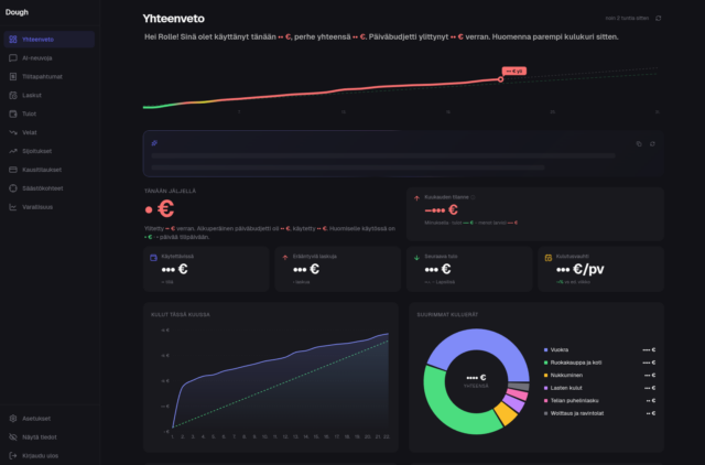 Dough app alkaa olla valmis. Tästä on jo nyt ollut huomattavasti apua päivittäisessä arjessa. YNAB on mahtava, mutta ei oikein meinaa riittää aika ja energia manuaaliseen ennalta-budjetointiin ja tulee jonkin verran tehtyä heräteostoksia. Haluaisin, että useampi kuukausi jäisi plussalle ja siksi lähdin jokunen viikko sitten koodaamaan erillistä sovellusta tähän. Tämä on companion app YNABille, tarkoituksena Copilot Moneyn kaltainen henkilökohtaisen talouden ekosysteemi, mutta YNAB-käyttäjille ja Euroopassa. CM on käytössä vain jenkeissä. YNAB on messissä lähinnä siksi, että sen zero-based/envelope-budjetointimallia olisi hullua lähteä toisintamaan, vaikka se olisikin mahdollista ja siksi, että en halua sotkea perheemme näkymää tarkoilla taulukoilla – pysykööt ne minun hallinnassani YNABin puolella.