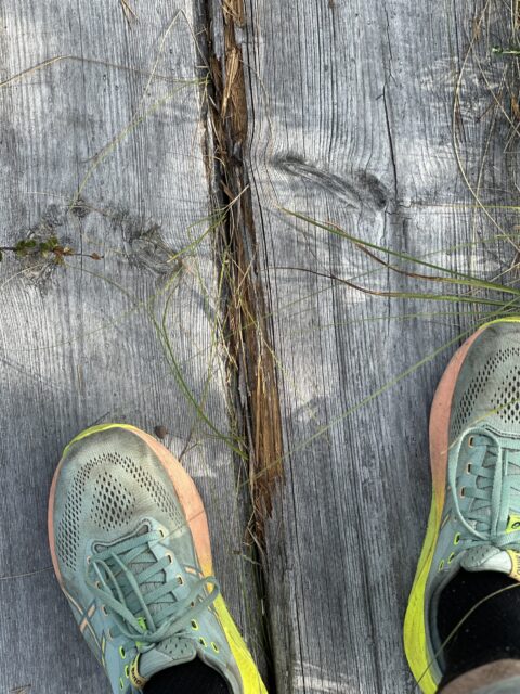 Päivällä Kilpisuolle, koska Urho, Lotta ja Veera eivät ole vielä käyneet. Itse kävin Manun ja äitini kanssa muutama vuosi sitten. Manu muistaa paikan, mutta tällä kertaa kesän ötökät alkavat pelottamaan, vaikka ei niitä paljon ole. Lintutornille ja takaisin patikoitavaa kertyy reilut kolme kilometriä. Mukavan kevyt pätkä. Tuulenvire hieman helpottaa muuten melko paahtavassa kelissä. Spottaan paljon mustikoita ja lakkoja, mutta en jää poimimaan tällä kertaa.